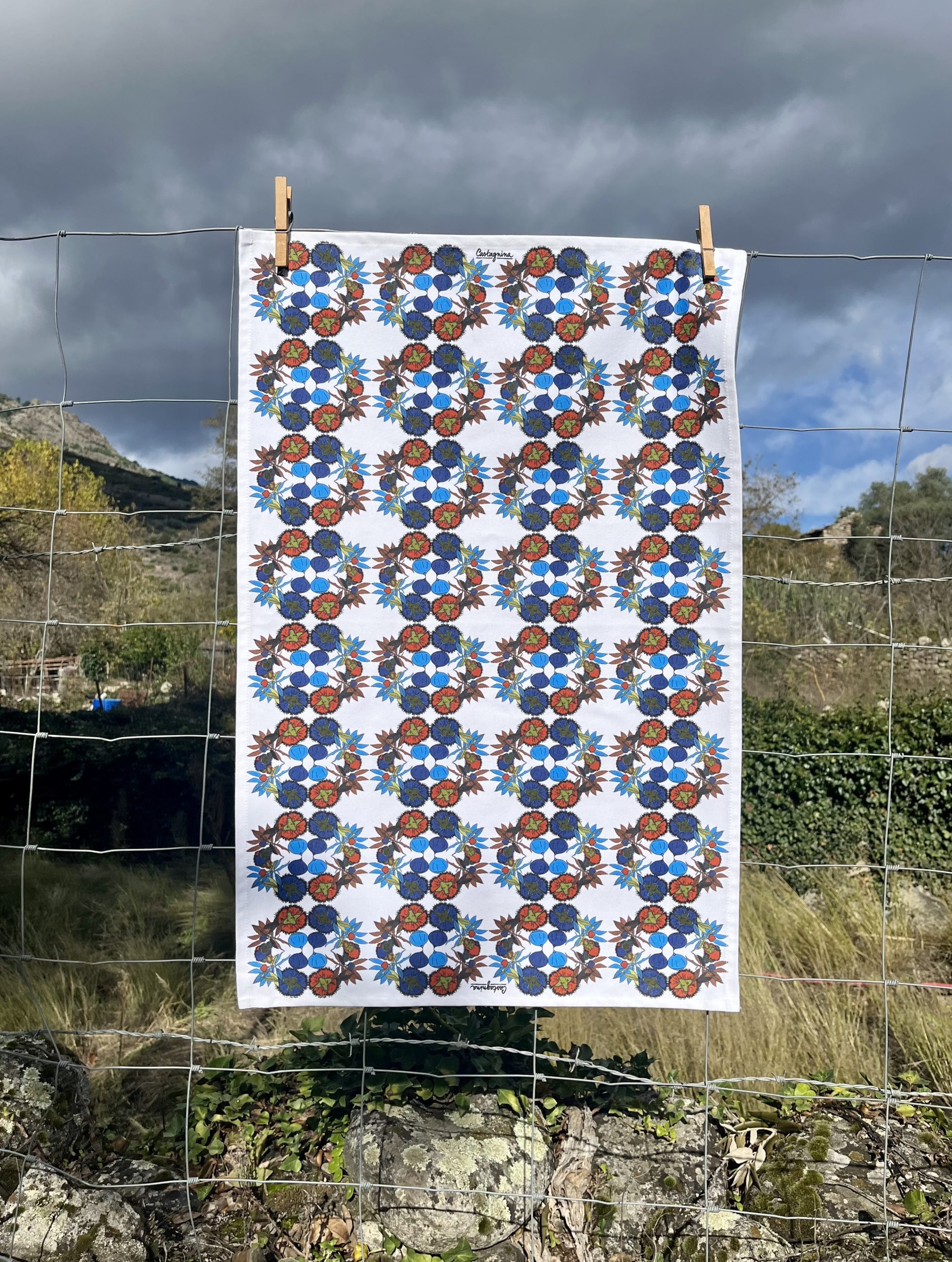Blue chestnut print tea towel
